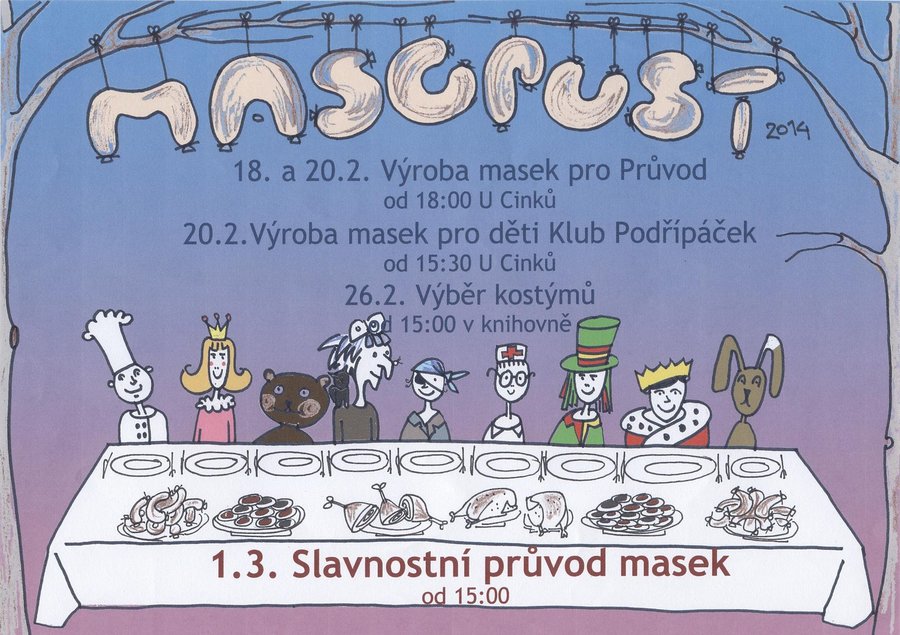 V úterý 18. 2. 2014, ve čtvrtek 20. 2. 2014 a v úterý 25. 2. 2014 od 18.00 hodin u Cinků výroba masopustních masek.