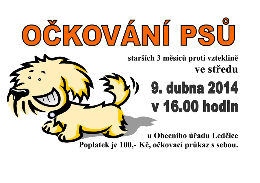Oznamujeme občanům, že čištění komínů se bude provádět v pátek 21. 2. 2014 a v sobotu 22. 2. 2014. Zájemci se mohou předběžně přihlásit na Obecním úřadě v Ledčicích.
