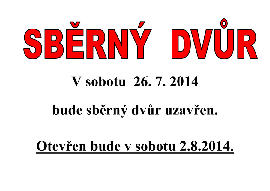 Místo pondělí 27. 10. 2014 bude Sběrný dvůr mimořádně otevřen ve středu 29. 10. 2014.