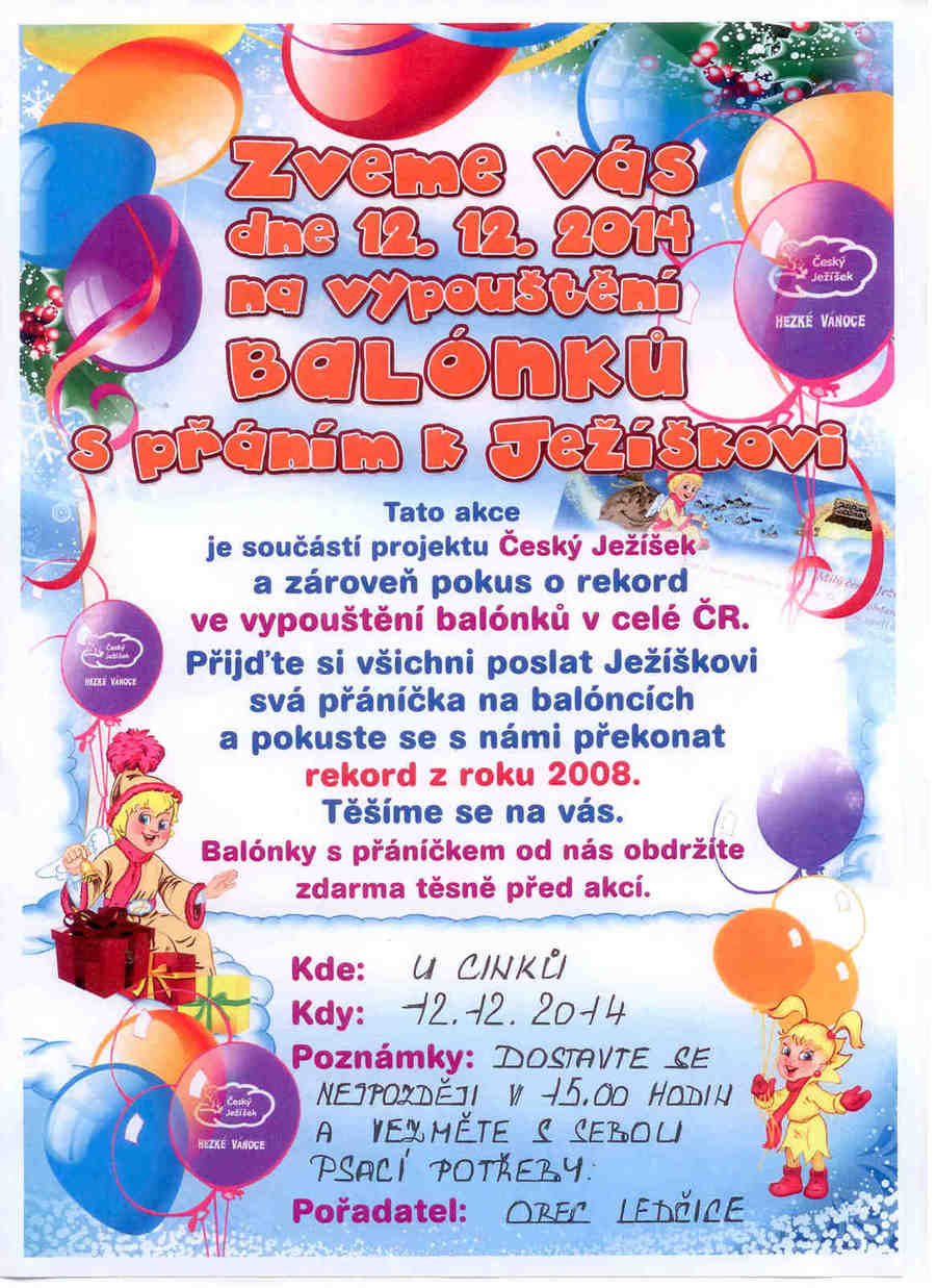 Na pátek 12.12. 2014 připravila Obec Ledčice společně s Rádiem Impuls vypouštění vánočních přání od 15:00 U Cinků a Loutkové divadlo Kozlík – „Pohádka o Luciáškovi“ od 16:00 U Cinků.