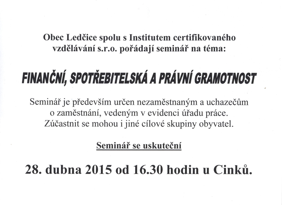 Na zájezd se můžete přihlásit nejpozději do pátku 20.11.2015 na Obecním úřadu Ledčice