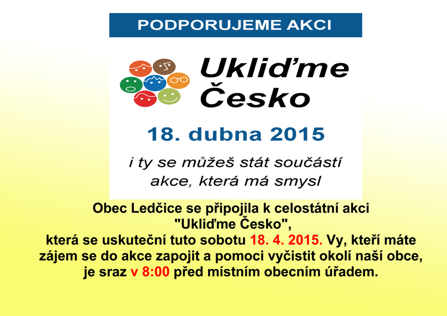 Čištění komínů se bude provádět 6. 3. 2015 a 7. 3. 2015. Zájemci se mohou předběžně přihlásit na Obecním úřadě v Ledčicích. Cena vyčištění komínu včetně vystavení revize podle vyhlášky č. 91/2010 Sb. činí 450,- Kč.