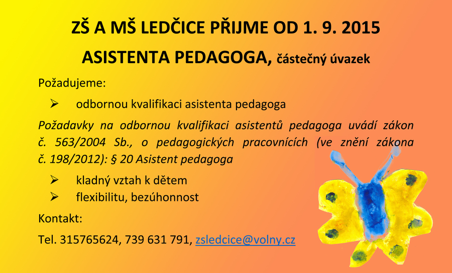 ZÁPIS DO MATEŘSKÉ ŠKOLY V LEDČICÍCH NA ŠKOLNÍ ROK 2015/16