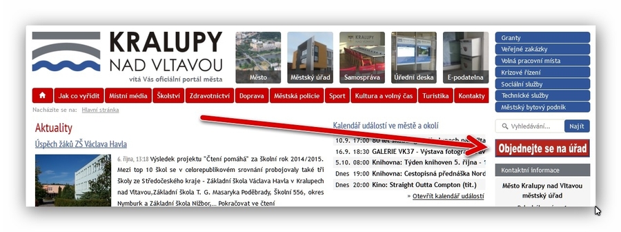 • Od 1. 10. 2015 byl spuštěn rezervační systém, který našim občanům umožní objednat si vyřízení svých záležitostí v jim vyhovujícím termínu a bez čekání. Nově je možné objednat se na odbor dopravy, správní a odbor živnostenský. Objednávací den je středa. Podrobné informace naleznete na www.mestokralupy.cz/mestsky-urad/rezervacni-system.
