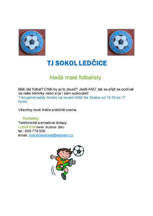 TJ SOKOL LEDČICE zve srdečně všechny své příznivce a členy na Výroční členskou schůzi, která se koná v sobotu 24. 1. 2015 od 15:00 v pohostinství Na návsi. Občerstvení zajištěno.