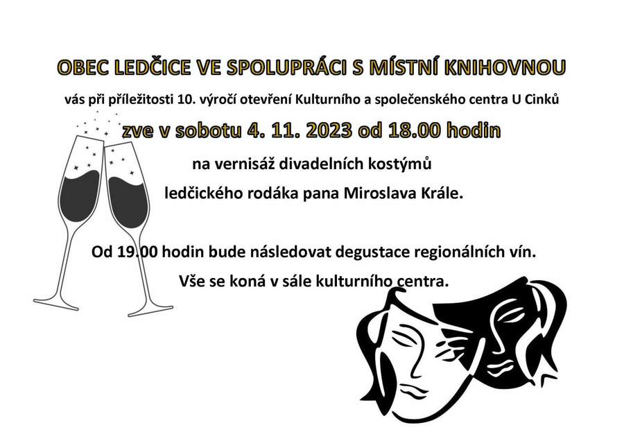 Úvod > Obec > Aktuality > 10. výročí otevření Kulturního a společenského centra U Cinků - v sobotu 4. 11. 2023
