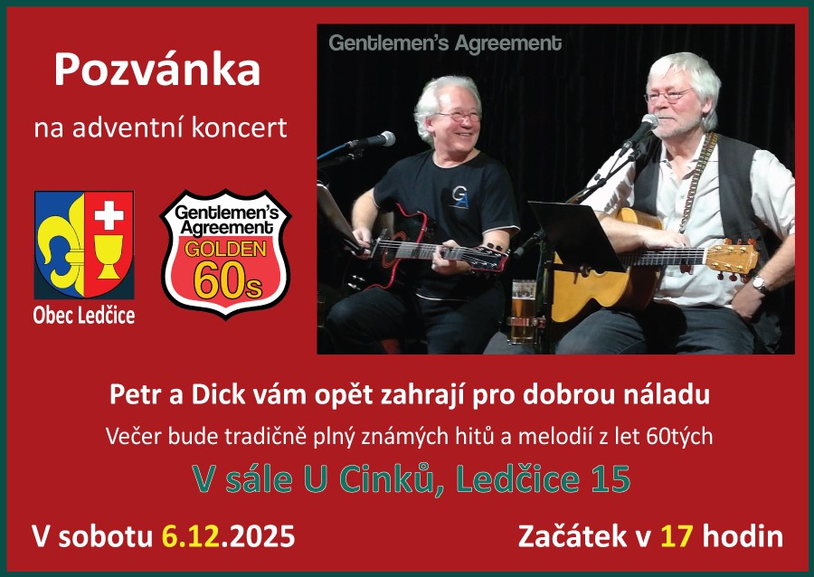 Úvod > Obec > Aktuality > Adventní koncert Dicka Overdevest a Petra Puka v sobotu 6. 12. 2025 od 17:00 U Cinků