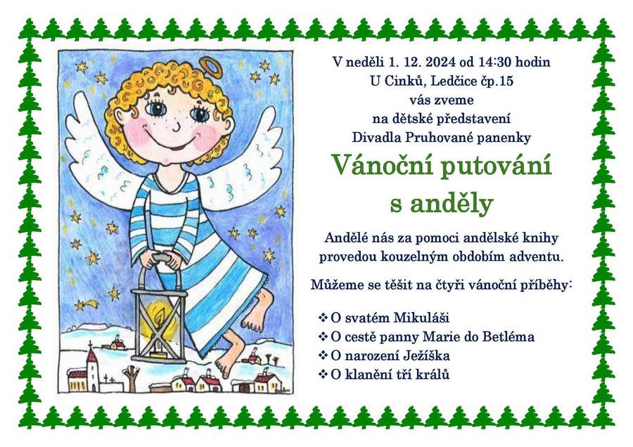 Úvod > Obec > Aktuality > Divadlo pro děti - 1. 12. 2024 od 14:30 hod U Cinků - Vánoční putování s anděly