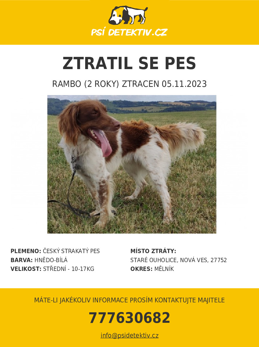Úvod > Obec > Aktuality > Hledá se pes - ztratil se 5.11. 2023 ve Starých Ouholicích