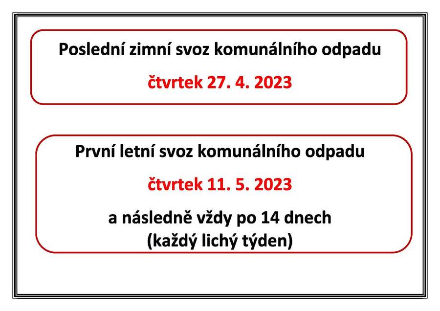 Úvod > Obec > Aktuality > Letní svoz popelnic 2023