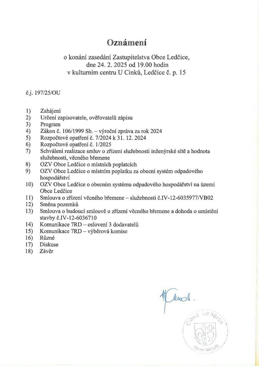 Úvod > Obec > Aktuality > Oznámení o konání zastupitelstva 24.2.2025