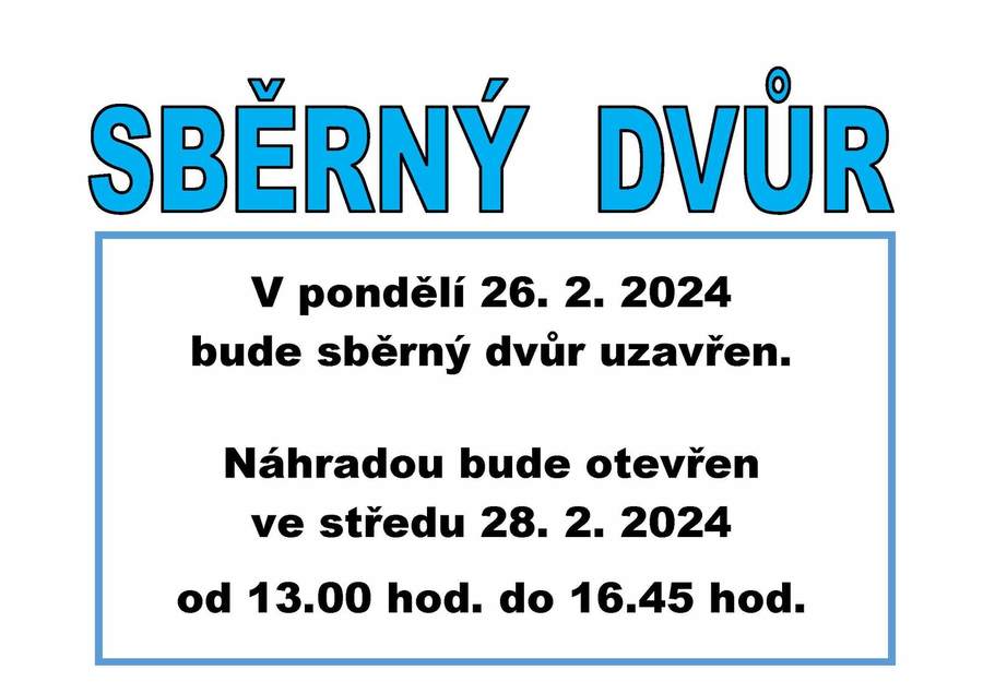 Úvod > Obec > Aktuality > Sběrný dvůr - pondělí 26. 2. 2024