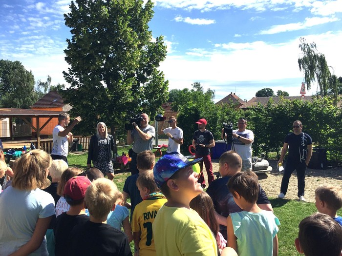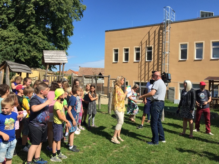 Sazka Olympijský víceboj je největší školní sportovní projekt v České republice. Naši žáci se zapojují již čtvrtým rokem v rámci tělesné výchovy do Olympijského diplomu. Disciplíny testují rychlost, ohebnost, vytrvalost, sílu, hbitost, rovnováhu, silovou vytrvalost a výbušnost. Každá škola, která se zapojí, může také vyhrát Olympijské tréninky na škole se známými sportovci. Každý rok Sazka Olympijský víceboj losuje ze zapojených škol dvě v každém kraji. Rovněž je možnost vyhrát poukazy na sportovní vybavení. Naše škola již v prvním roce vyhrála olympijský trénink, kdy nás navštívil Petr Pilát, nejlepší Čech ve freestyle motokrosu. V tomto školním roce jsme měli opět velké štěstí při losování a tentokrát jsme vyhráli poukaz v hodnotě 10.000 Kč na sportovní vybavení. Když jsme pomalu „rozdýchali“ tuto krásnou výhru, ozvala se Česká televize, že chce být u předání výhry a vše natočit. Postupně dorazily dvě posádky-tým ze Sazky Olympijského víceboje a televizní štáb České televize.