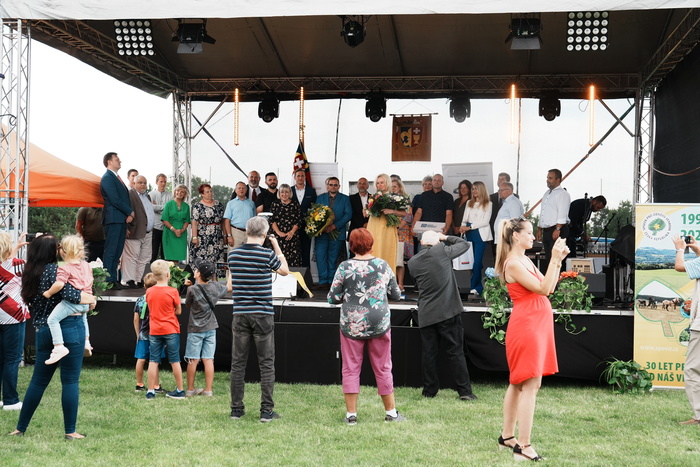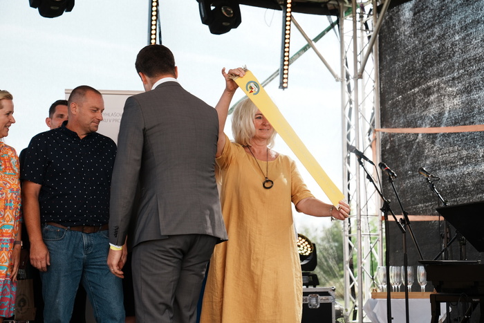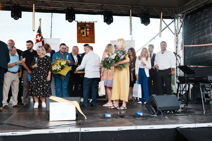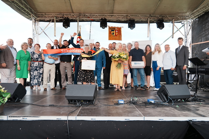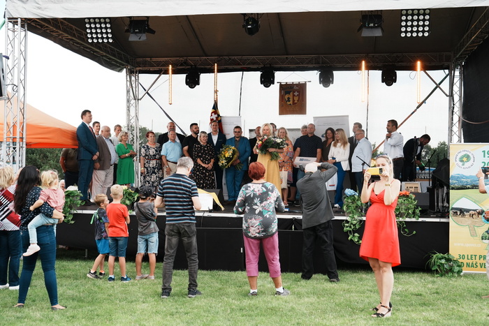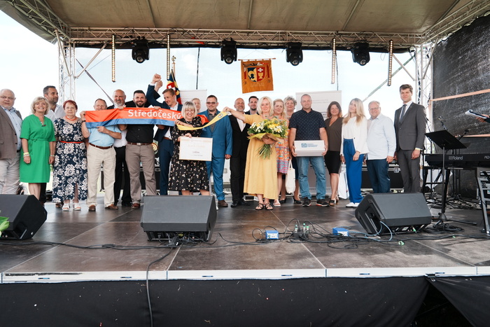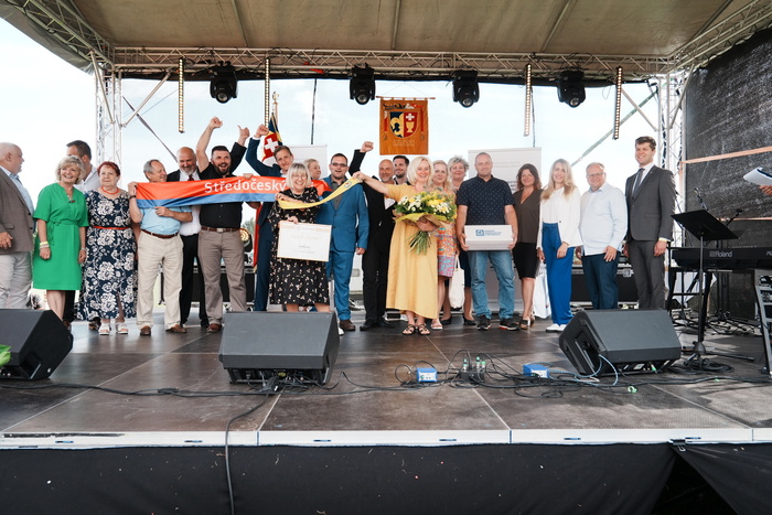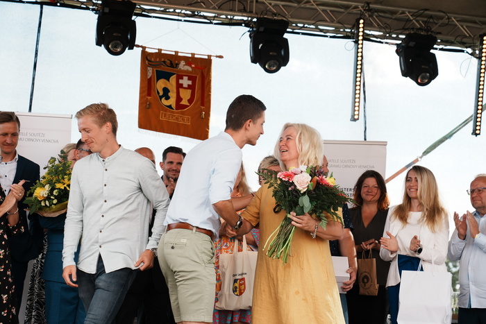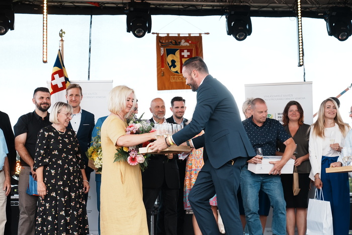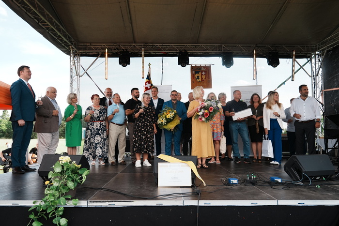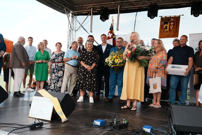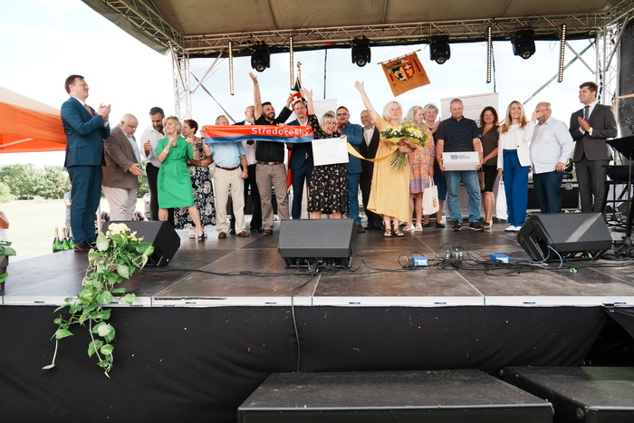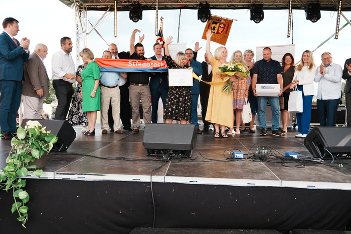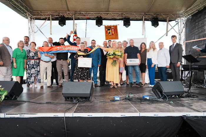Vyvrcholením celého dne bylo předání Zlaté stuhy z rukou náměstka hejtmanky Středočeského kraje pro oblast regionálního rozvoje a územního plánování pana Jiřího Snížka a náměstka ministra pro místní rozvoj pana Lukáše Černohorského obci Ledčice! Zlatá stuha je ocenění kolektivní práce všech zastupitelů naší obce, a proto jsme si pro cenu na podium za podpory fandících ledčičáků a příznivců Ledčic vystoupali společně. Úspěch jsme oslavili skleničkou šampaňského. KH