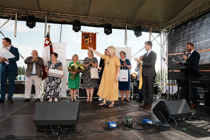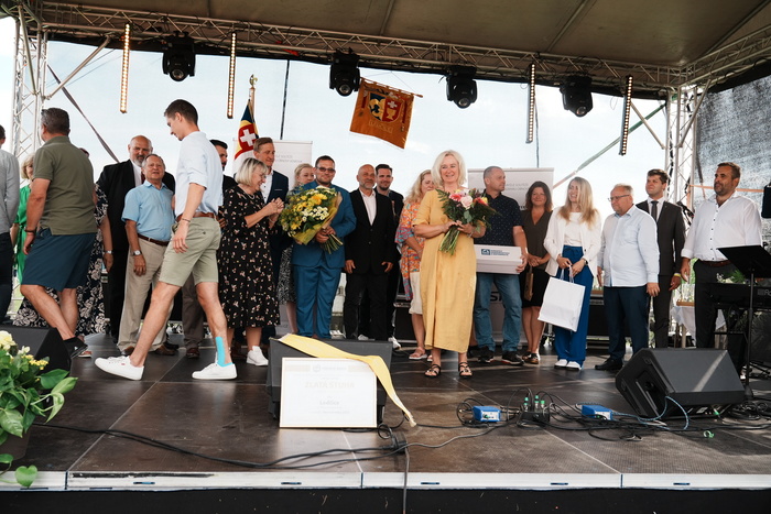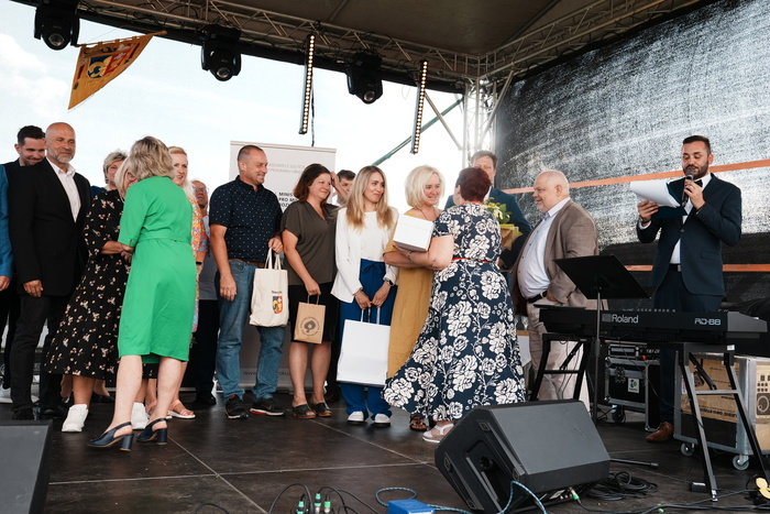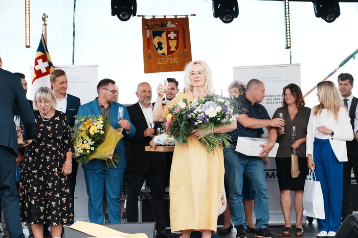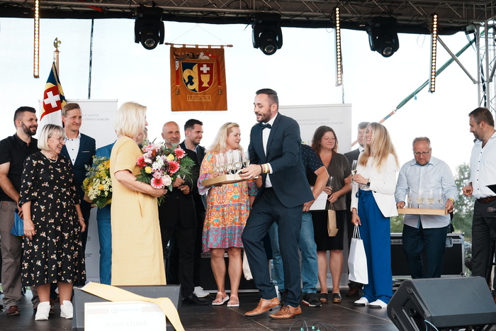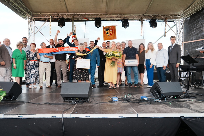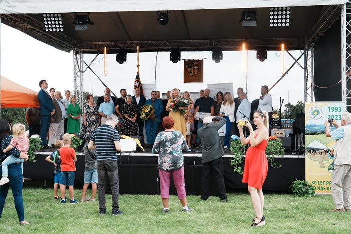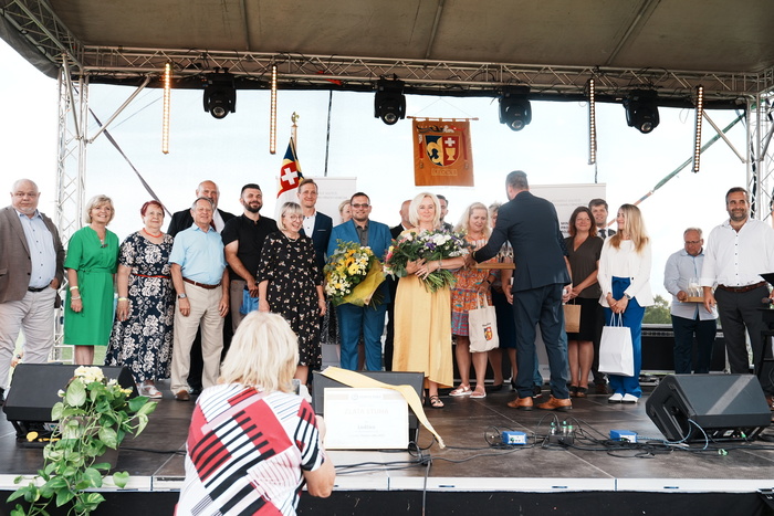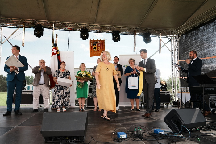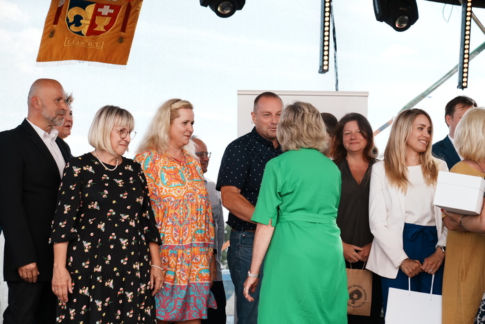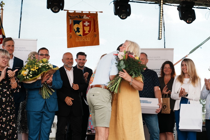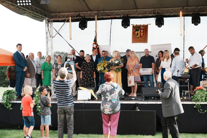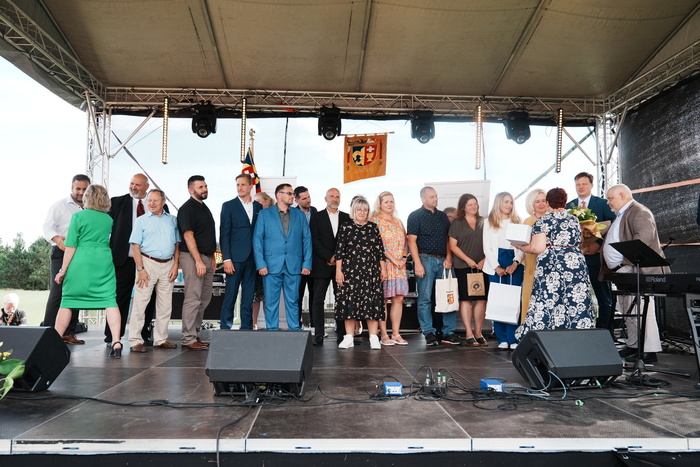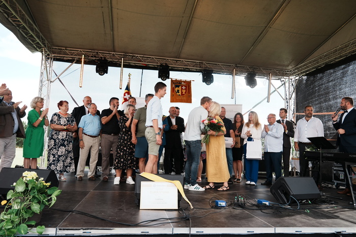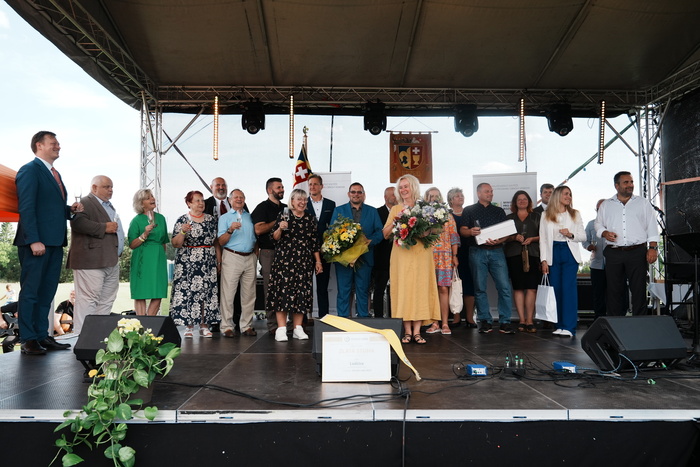 Vyvrcholením celého dne bylo předání Zlaté stuhy z rukou náměstka hejtmanky Středočeského kraje pro oblast regionálního rozvoje a územního plánování pana Jiřího Snížka a náměstka ministra pro místní rozvoj pana Lukáše Černohorského obci Ledčice! Zlatá stuha je ocenění kolektivní práce všech zastupitelů naší obce, a proto jsme si pro cenu na podium za podpory fandících ledčičáků a příznivců Ledčic vystoupali společně. Úspěch jsme oslavili skleničkou šampaňského. KH