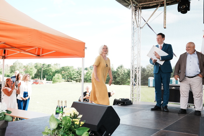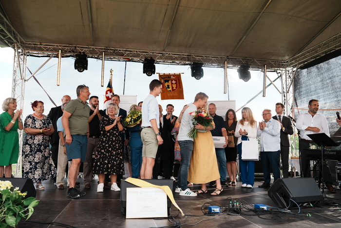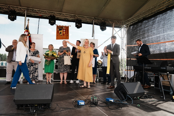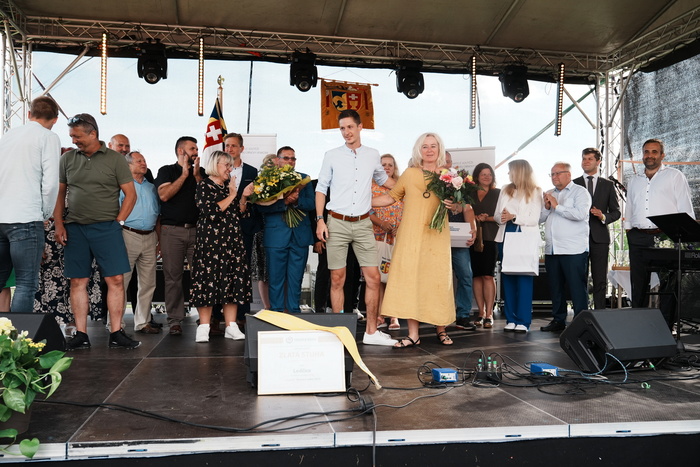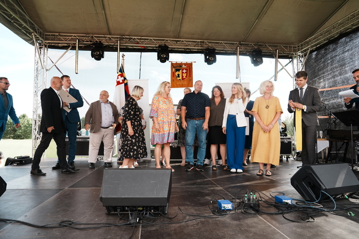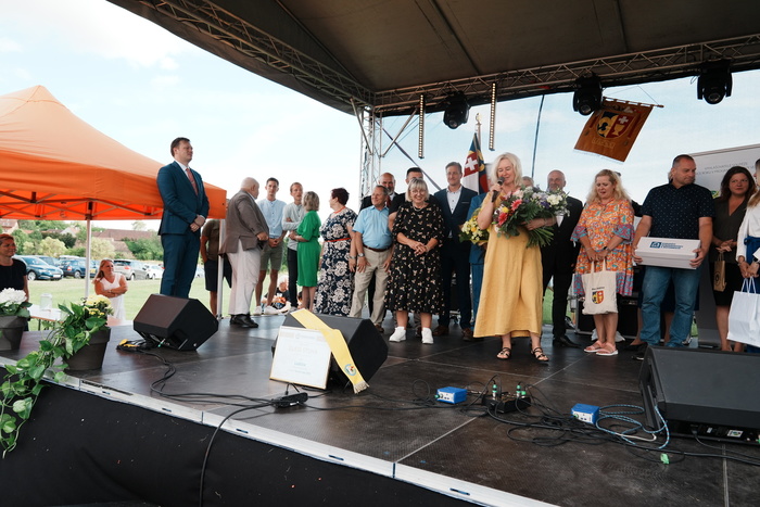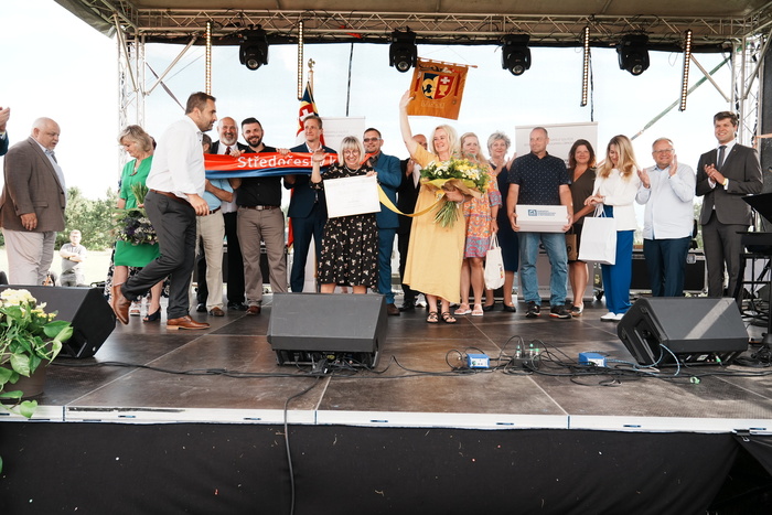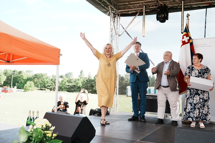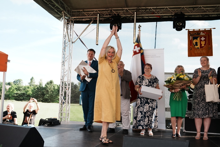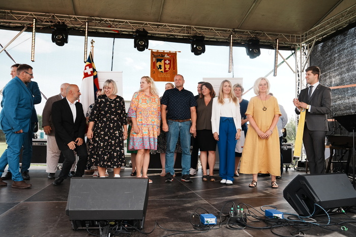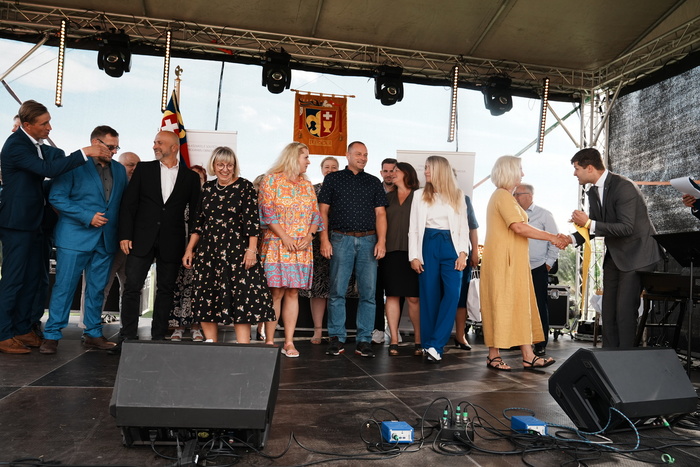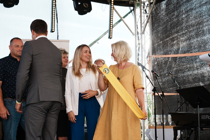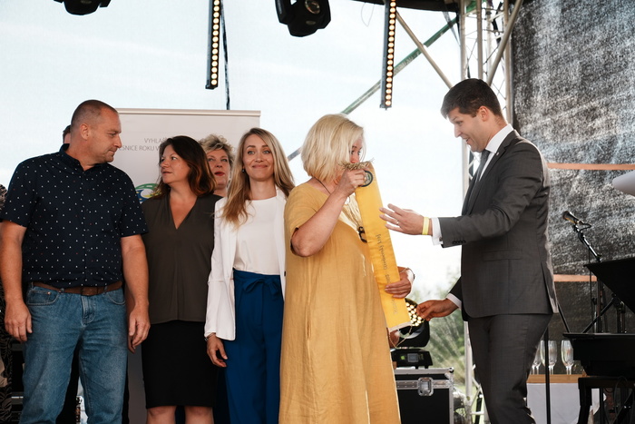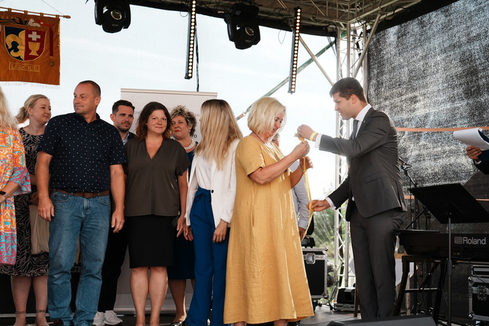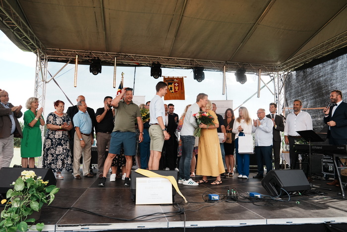Vyvrcholením celého dne bylo předání Zlaté stuhy z rukou náměstka hejtmanky Středočeského kraje pro oblast regionálního rozvoje a územního plánování pana Jiřího Snížka a náměstka ministra pro místní rozvoj pana Lukáše Černohorského obci Ledčice! Zlatá stuha je ocenění kolektivní práce všech zastupitelů naší obce, a proto jsme si pro cenu na podium za podpory fandících ledčičáků a příznivců Ledčic vystoupali společně. Úspěch jsme oslavili skleničkou šampaňského. KH