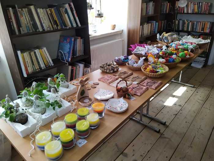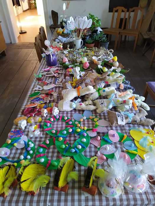Stejně jako každý rok, i letos jsme se na babinci s řádným předstihem začali připravovat na velikonoční jarmark U Cinků. Velikonoce jsou oslavou jara, a tak se naše výrobky nesly v barevném a veselém duchu. V ošatkách se sešla spousta háčkovaných kuřátek, zajíčků, myšek a velikonočních kraslic. Nechyběly samozřejmě ani tolik žádané perníčky. Se svými výrobky přišly na jarmark i děti z místní školy a školky.