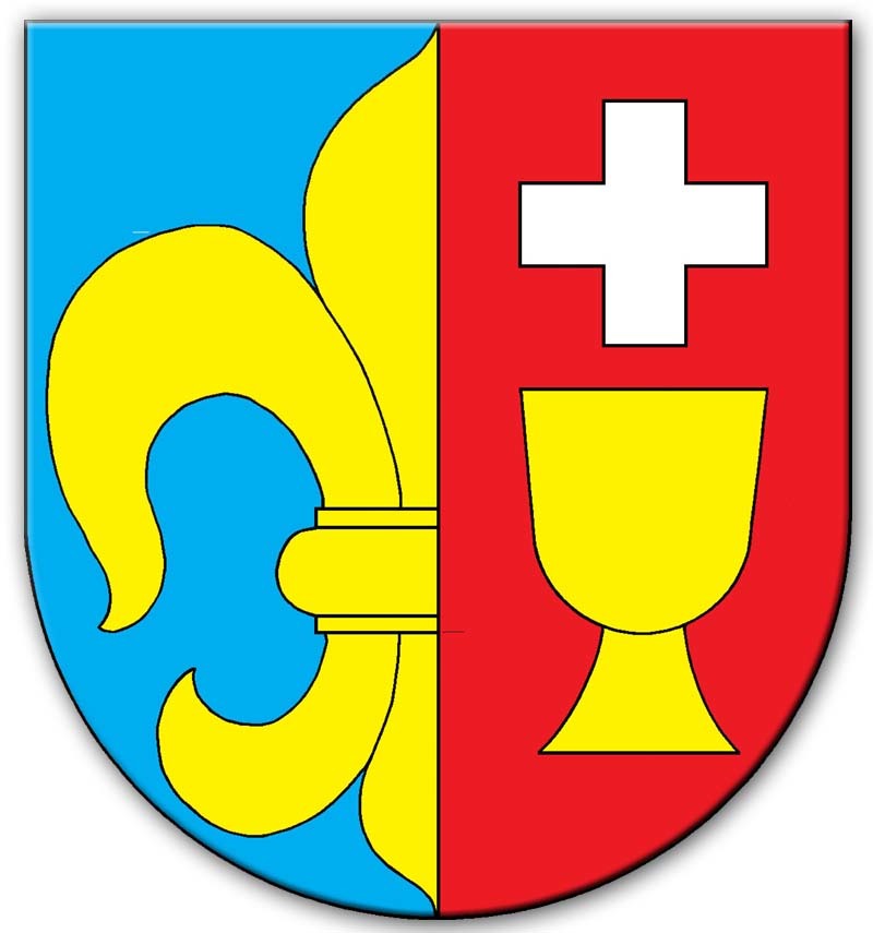 ZNAK: V modro-červeně polceném štítě vpravo polovina zlaté lilie, vynikající od poltící linie, vlevo stříbrný řecký kříž nad zlatým kalichem.